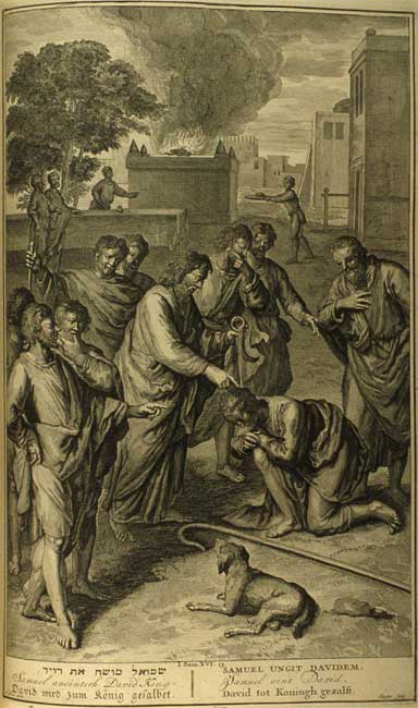 О Самуиле также говорится, что он был «судьей» (I Сам. 7), то есть, во-первых, избавителем израильтян во время сражения с филистимлянами, во-вторых, арбитром на всей территории между городами Бет-Эль, Гилгал, Мицпе и Рама (I Сам. 7:16–17). Самуил имел двух сыновей, Иоэля и Авию, которых, состарившись, он поставил судьями над Израилем, и они судили в Беер-Шеве (I Сам. 8:2; ср. I Хр. 6:18). Возможно, Самуил намеревался сделать их своими наследниками, что было бы характерным для царской власти; однако вследствие их взяточничества и искажения правосудия старейшины Израиля обратились к Самуилу с жалобой и попросили поставить над ними царя, чтобы «он судил нас, как у прочих народов» (I Сам. 8:5). Трудно с определенностью сказать, каково было отношение Самуила к этой просьбе народа, так как в Библии содержатся две различные версии событий: согласно одной, установление царской власти отвечало требованиям времени (I Сам. 9:1–10:16), а согласно другой, установление царства означало отвержение Бога как царя Израиля и закабаление народа (I Сам. 8:6–18). Библия повествует, что по божественному повелению Самуил помазал Саула на царство (I Сам. 10:1), а затем на собраниях в Мицпе и Гилгале провозгласил его царем всенародно; Самуил установил права и обязанности царя, которые были тут же записаны (I Сам. 10:17–27; 11:14–15).