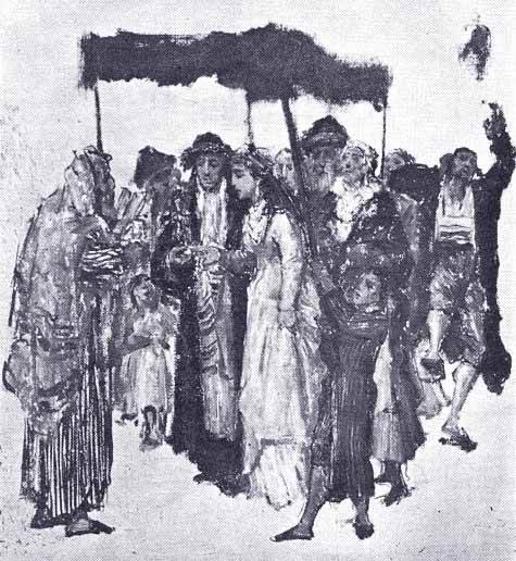 Можно полагать, что вступление в брак уже в библейский период сопровождалось какой-то церемонией. Однако Библия не приводит описания таковой, упоминая о ней лишь мимоходом. Из этих упоминаний, тем не менее, можно понять, что бракосочетание обычно сопровождалось многолюдным пиршеством (Быт. 29:22), которое продолжалось семь дней (Суд. 14:12) и сопровождалось особыми песнями (Пс. 78:63). Очевидно, частью брачной церемонии была демонстрация покрытой кровавыми пятнами одежды, в которую невеста была одета в свою первую брачную ночь, как доказательство того, что она вступила в брак будучи девственницей (Втор. 22:15, 17). В некоторых восточных общинах этот обычай сохранялся до новейшего времени.