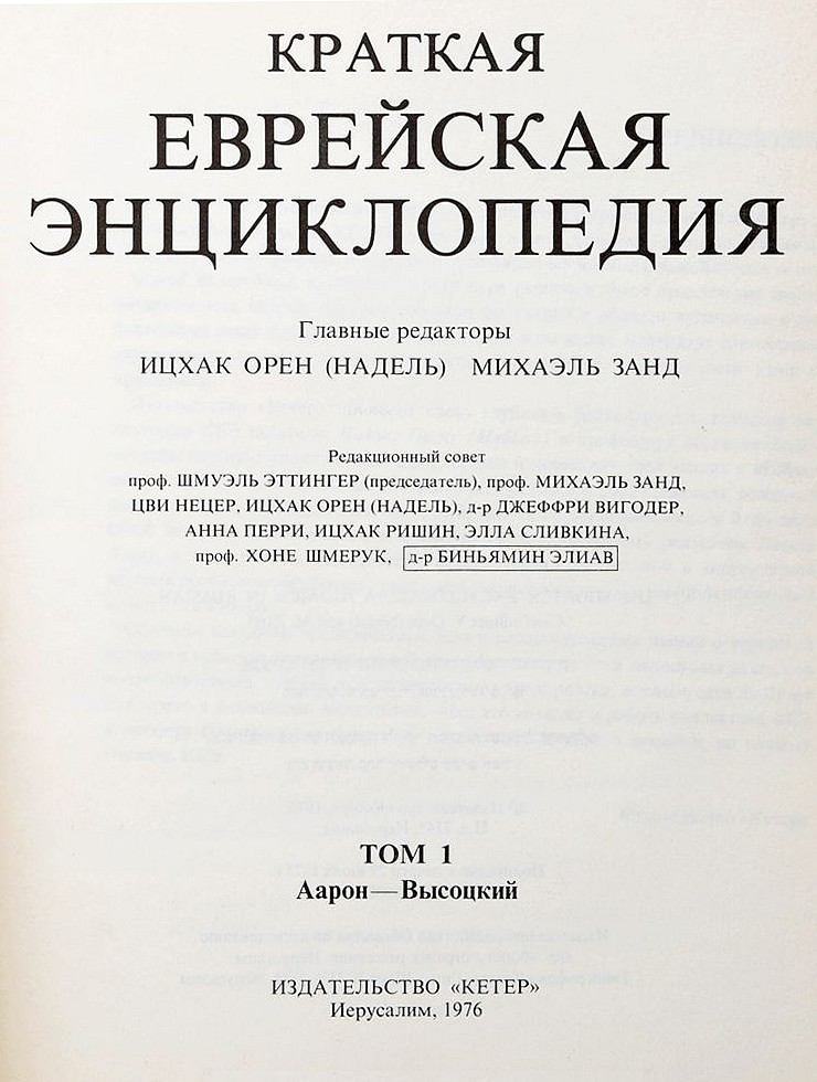 Редакционный совет: проф. Шмуэль Эттингер (председатель), проф. Михаэль Занд, Цви Нецер, Ицхак Орен (Надель), д-р Джеффри Вигодер, Анна Перри, Ицхак Ришин, Элла Сливкина, проф. Хоне Шмерук, д-р Биньямин Элиав
